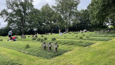 Startschuss für das Projekt war bereits im Herbst 2023. Seitdem haben die Schüler sich intensiv mit der Geschichte der Kriegsgräberstätte auseinandergesetzt. Über den Volksbund wurden Kontakte zu Angehörigen von Kriegstoten hergestellt, die für das Projekt Material zur Verfügung stellten. Zudem wurde eine intensive Archiv- und Literaturrecherche betrieben.