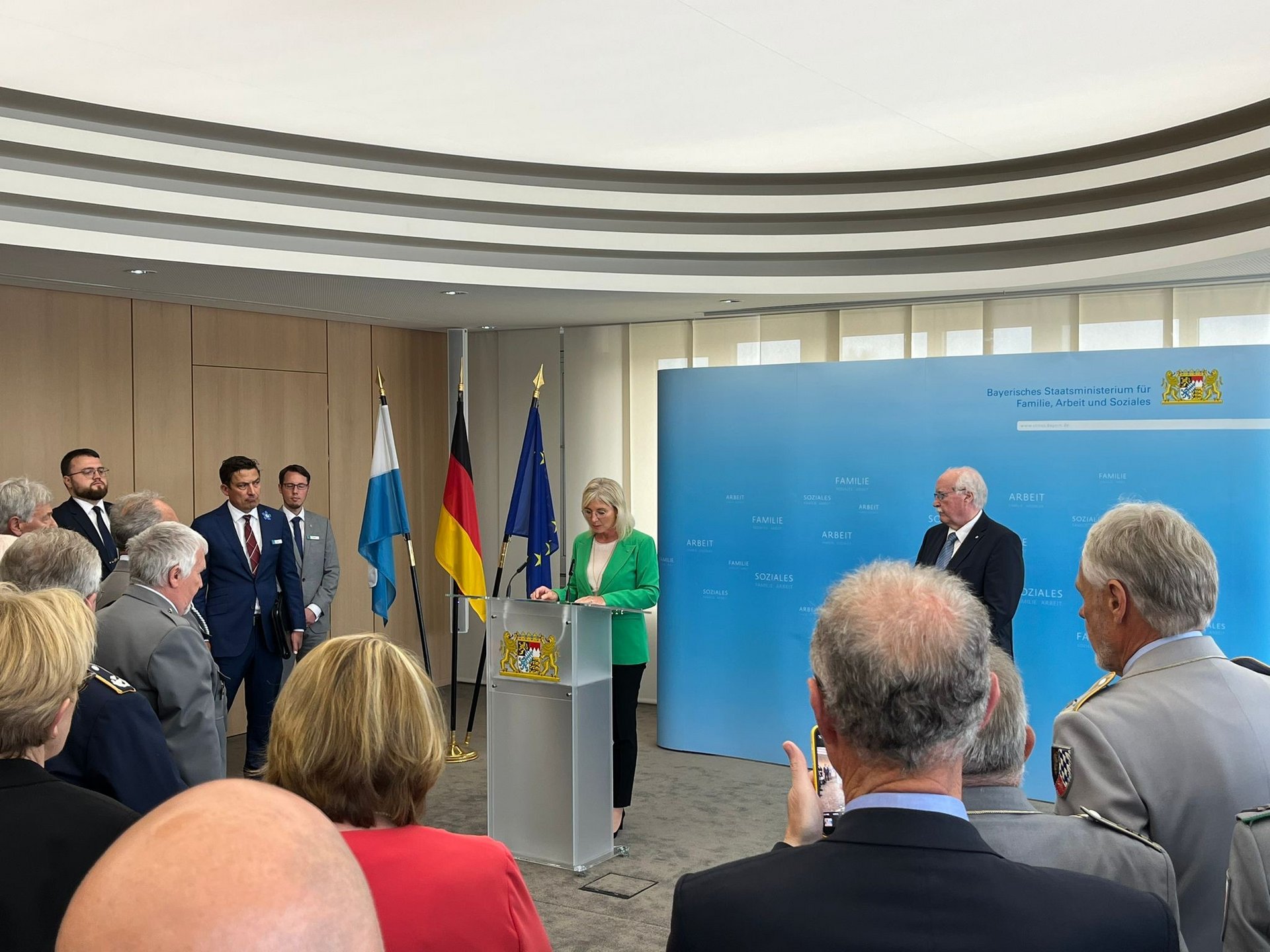 Sozialministerin Ulrike Scharf betonte: „Bayern ist Ehrenamtsland und ich bin stolz, dass mehr als 6000 Ehrenamtliche so engagiert gesammelt haben! Ein herzliches Vergelt’s Gott an alle Soldatinnen und Soldaten, Zivilbediensteten der Bundeswehr, den Mitgliedern der Reservisten- und Soldatenkameradschaften und allen weiteren Beteiligten!“ Die Ministerin erklärte ferner: „Wir lernen aus der Vergangenheit, um Zukunft zu gestalten. Mit dem Erhalt der Kriegsgräber im In- und Ausland leistet der Volksbund einen entscheidenden Beitrag, um diese als Lernorte und Mahnmale des Friedens zu bewahren. Das ist echte Friedensarbeit, die Europa gerade in diesen unruhigen Zeiten auch weiterhin dringend benötigt!“